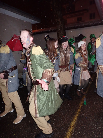 Heute durften wir einen besonderen Gast im Megi willkommen heissen. Unser Gründungspräsident Oli Lipp, welcher fleissig beim Shot-Samstag mitmachte. Alle geschminkt und gut gelaunt, an was das wohl lag... ging es weiter an die Kinderfasnacht. Mit viel Konfetti hielten wir hier unser erster Auftritt des Tages. Anschliessend ging es voll auf Kurs in den Fasnachtsgottesdienst, in welchem wir als HistorikerInnen unsere Lieder zum Besten gaben. Zum Abschluss des Tages, welcher noch lange nicht vorbei war, ging es nach Ruswil zu den Rosswöschwyber, welche ihr 60 jähriges Jubiläum feierten. Nach dem Monsterkonzert blieb noch laaaange Zeit, bis wir unseren Abendauftritt hatten.